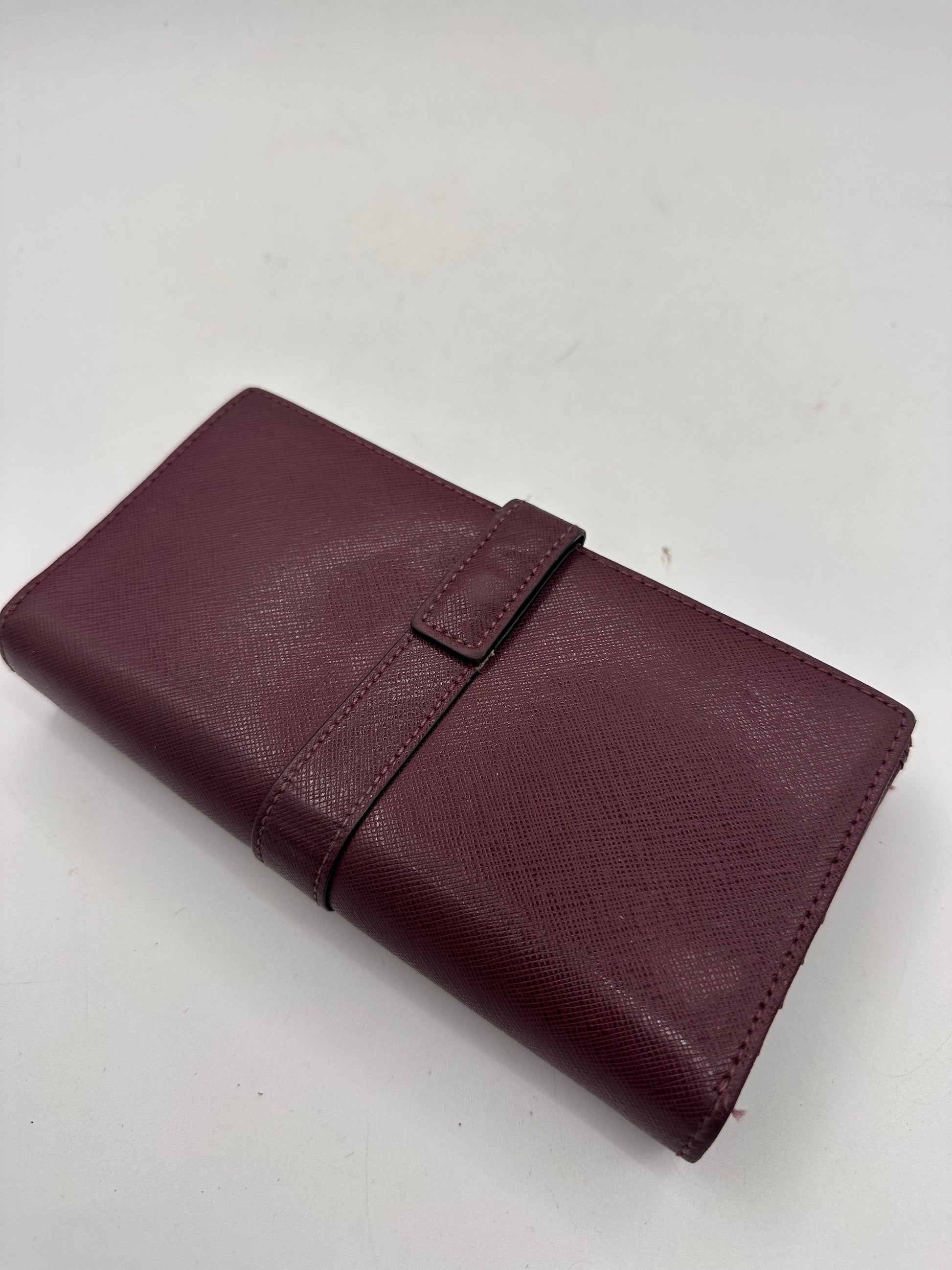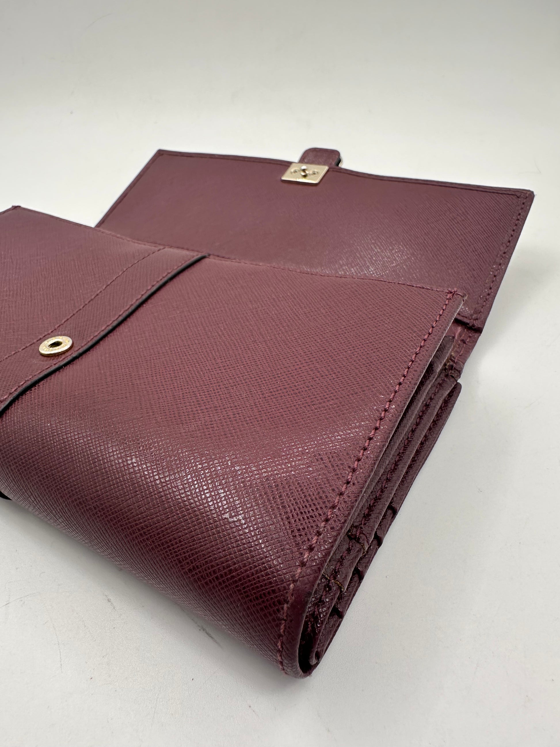 Blizgi Coccinelle piniginė pagaminta iš bordo spalvos saffiano odos. Prekės būklė VIDUTINĖ, yra m...
