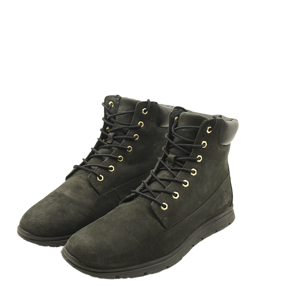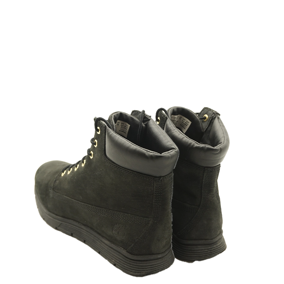 Šie Timberland Killington batai yra visiškai juodos spalvos, pagaminti iš aukštos kokybės nubuko odos ir turi tradicinį raištelių užsegimą su metalinėmis kilpomis, užtikrinančią tvirtą prigludimą.